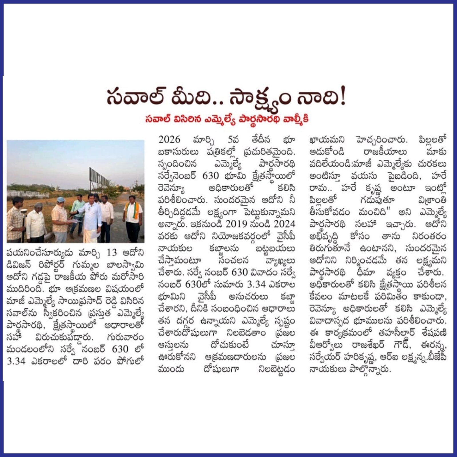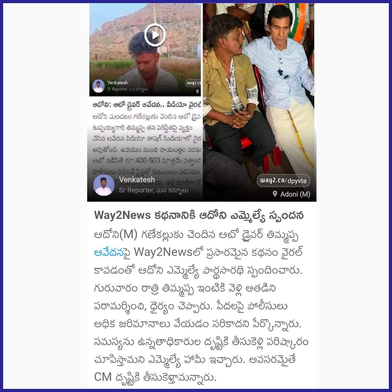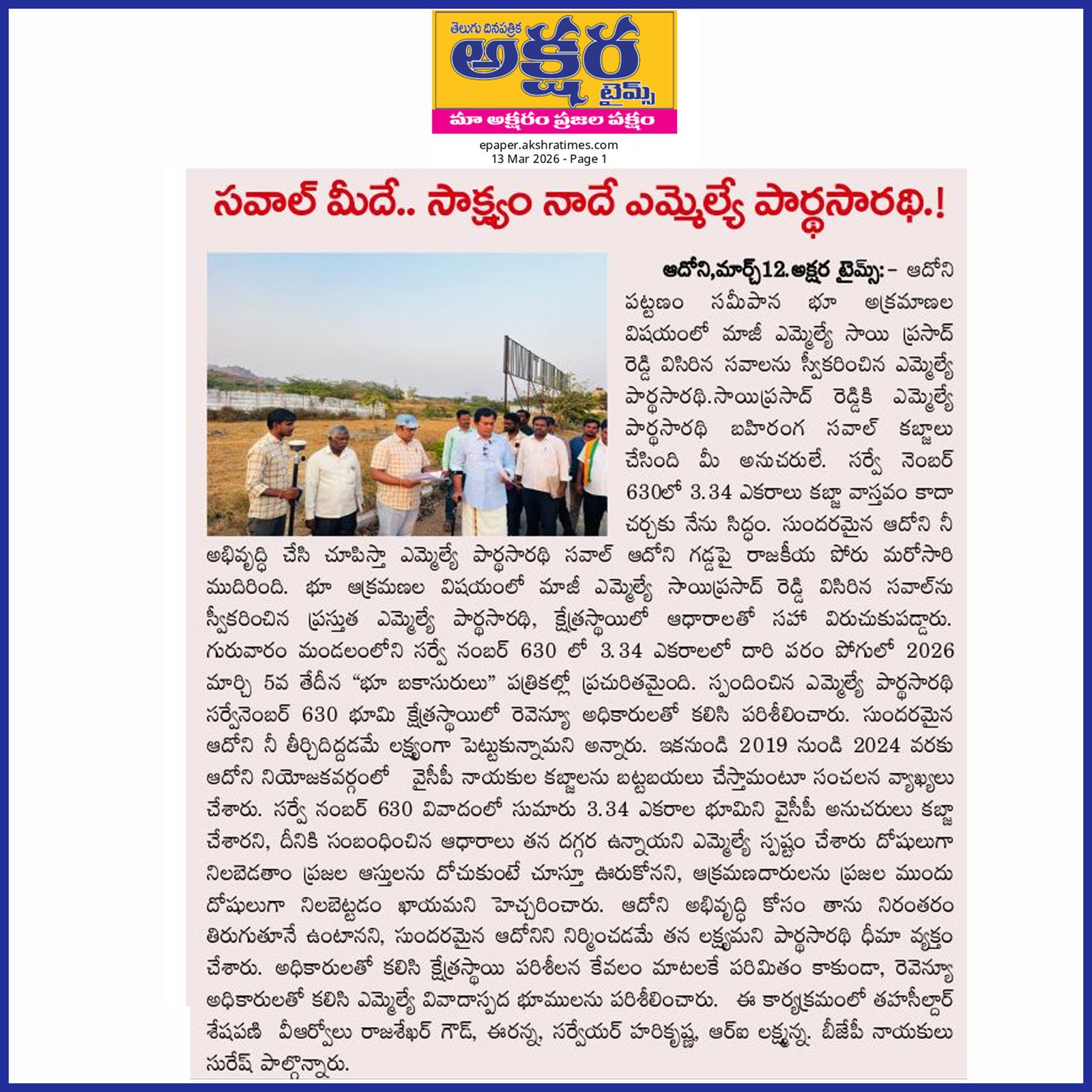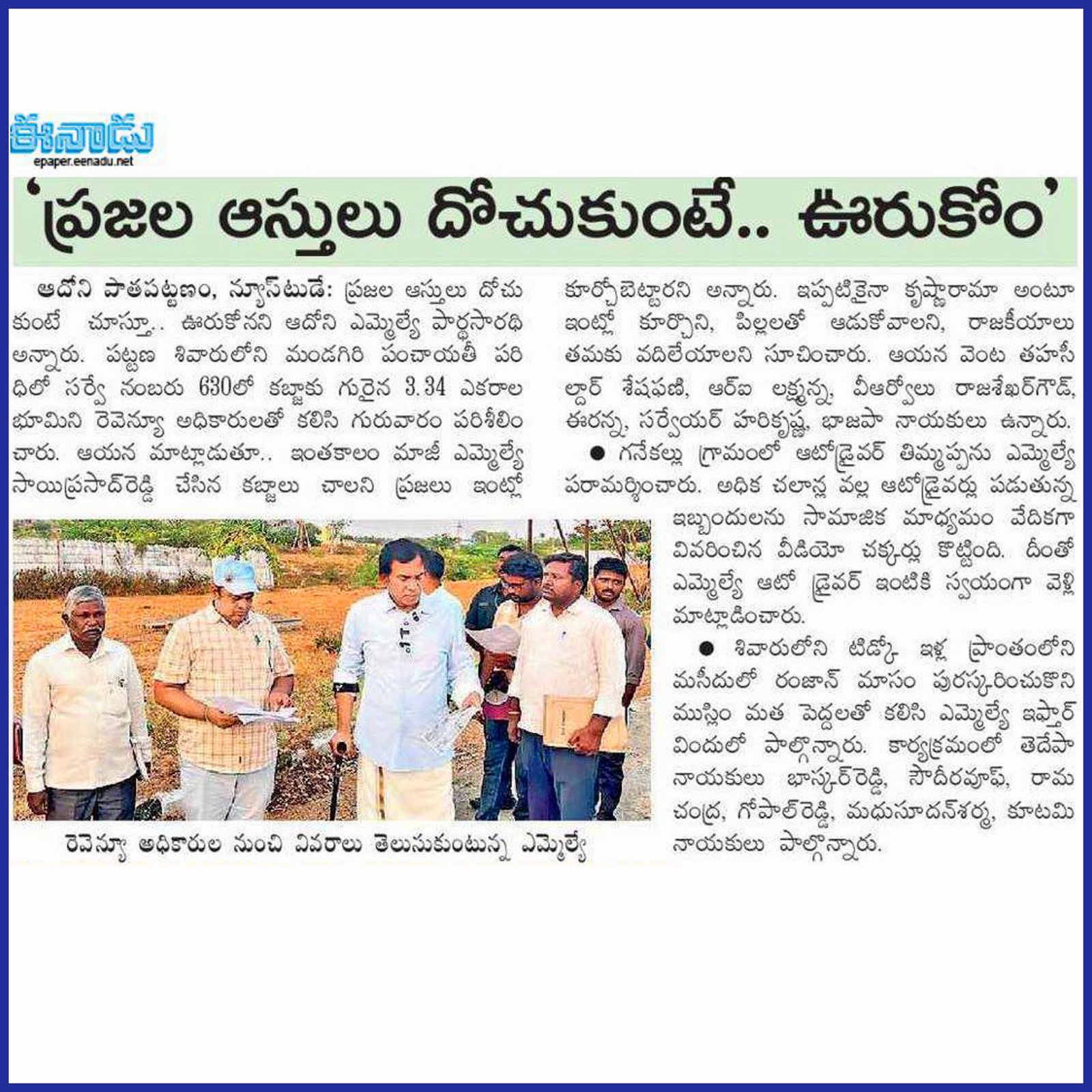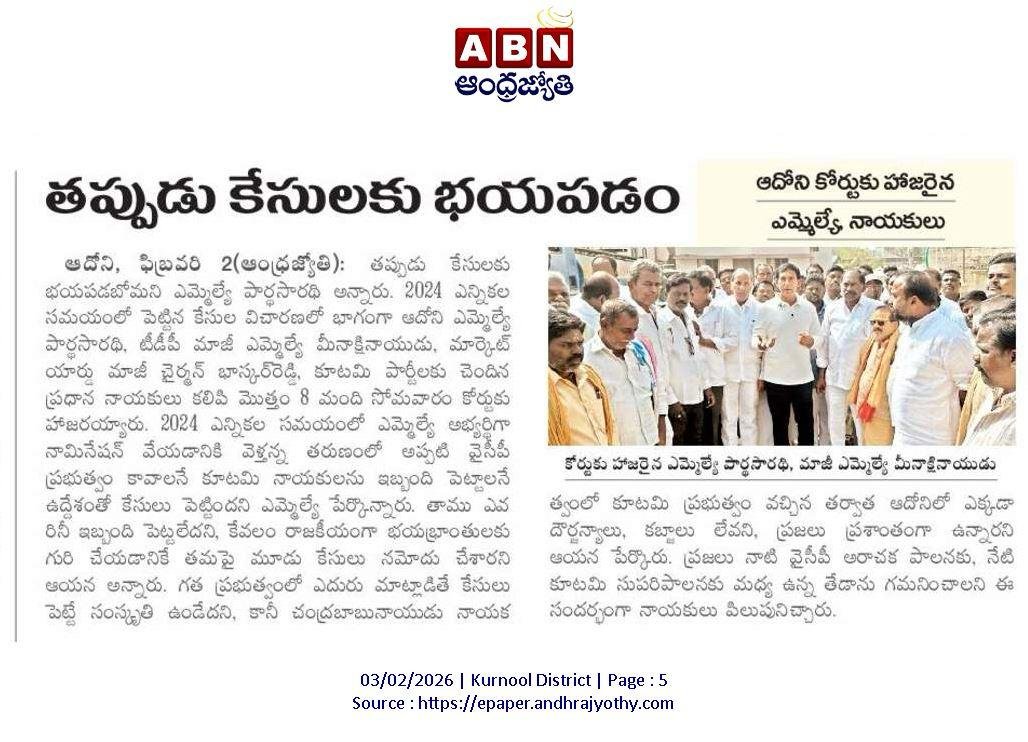 ఆంధ్రప్రదేశ్ రాష్ట్ర క్షేమమే లక్ష్యంగా భావించి, బీజేపీ–టిడిపి–జనసేన కూటమిగా ఏర్పడి 2024 ఆంధ్రప్రదేశ్ అసెంబ్లీ ఎన్నికల్లో విజయ ఢంకా మ్రోగించారు. ఈ ఎన్నికల్లో భారతీయ జనతా పార్టీ (బీజేపీ) తరఫున పోటీ చేసిన పి.వి. పార్థసారథి గారిని ఆదోని ప్రజలు అఖండ మెజారిటీ ఓట్లతో గెలిపించారు.