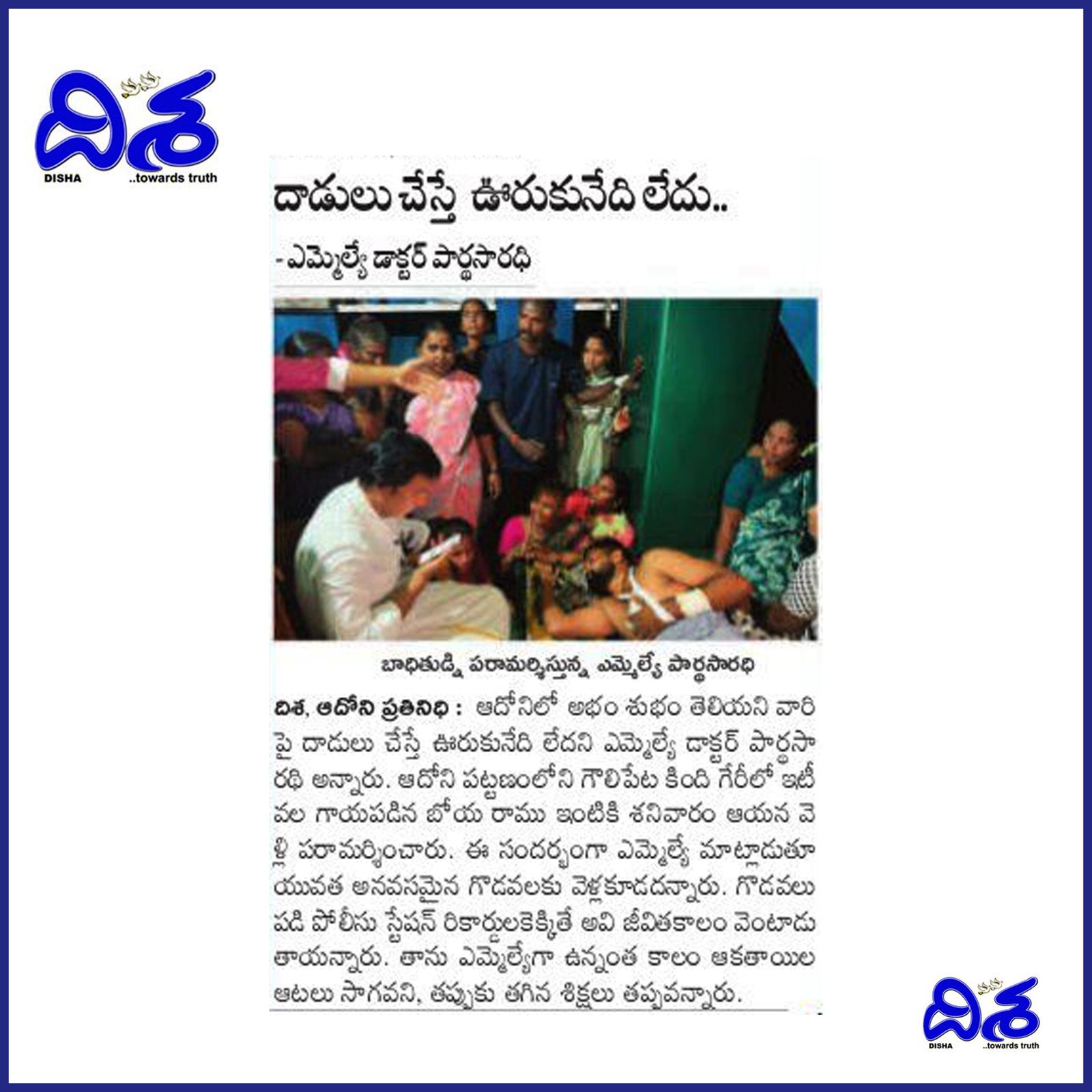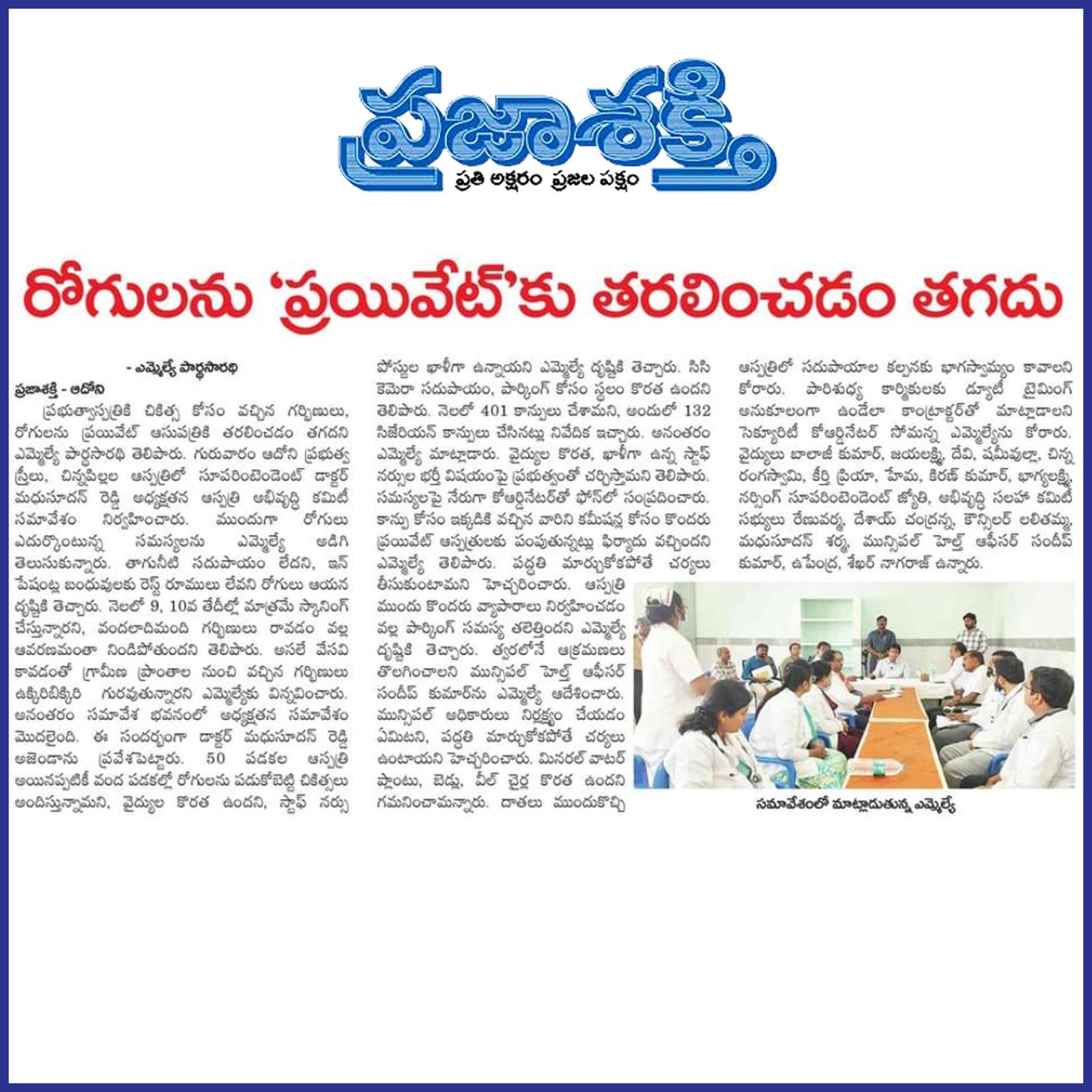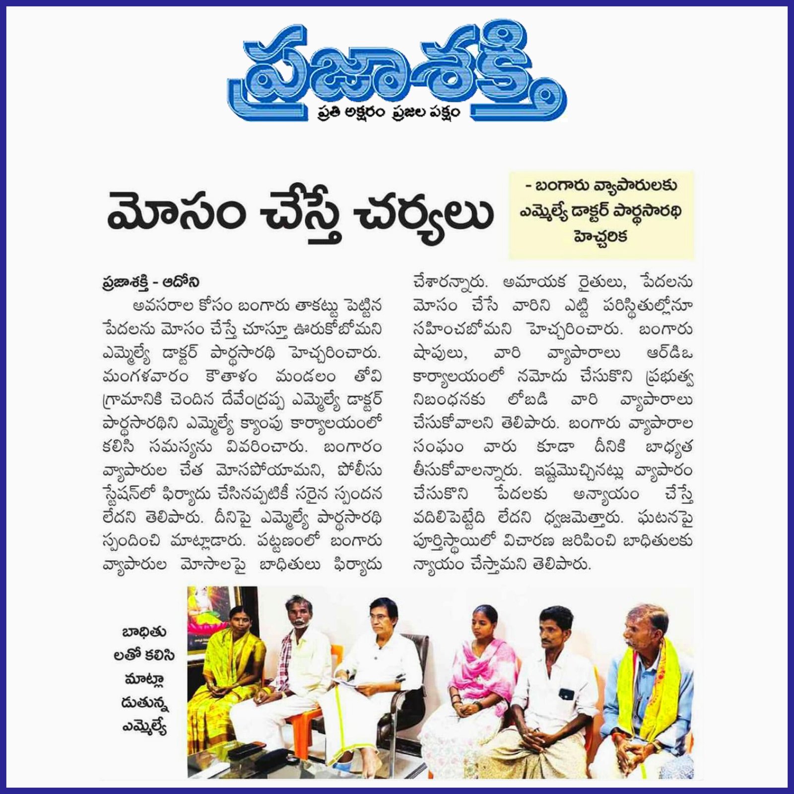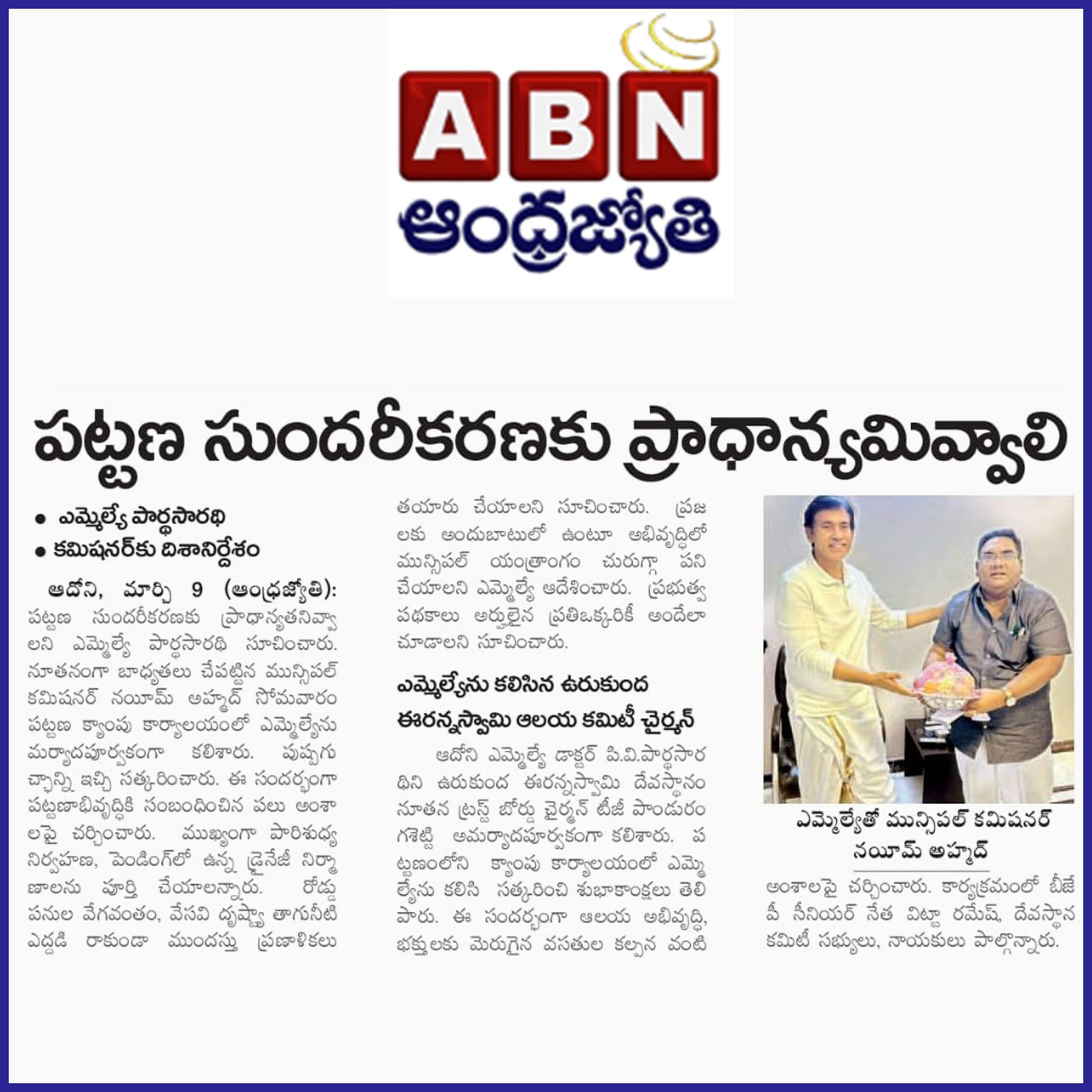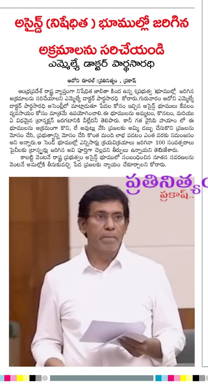 డా. పి.వి. పార్థసారథి, ఆయన సేవా గుణంతో ఎల్లప్పుడూ ప్రజల పక్షాన నిలబడే ఓ భారత రాజకీయ నాయకుడు. ప్రస్తుతం ఆయన ఆదోని నియోజకవర్గం ఎమ్మెల్యే గా ఆంధ్రప్రదేశ్ రాష్ట్ర ప్రజలకి తన సేవలని అందిస్తున్నారు.