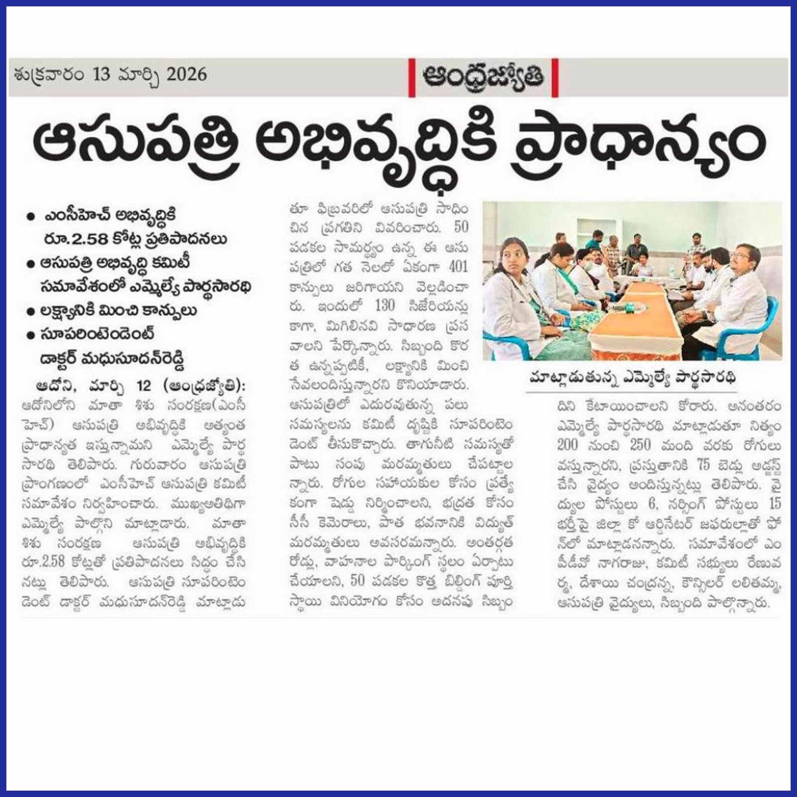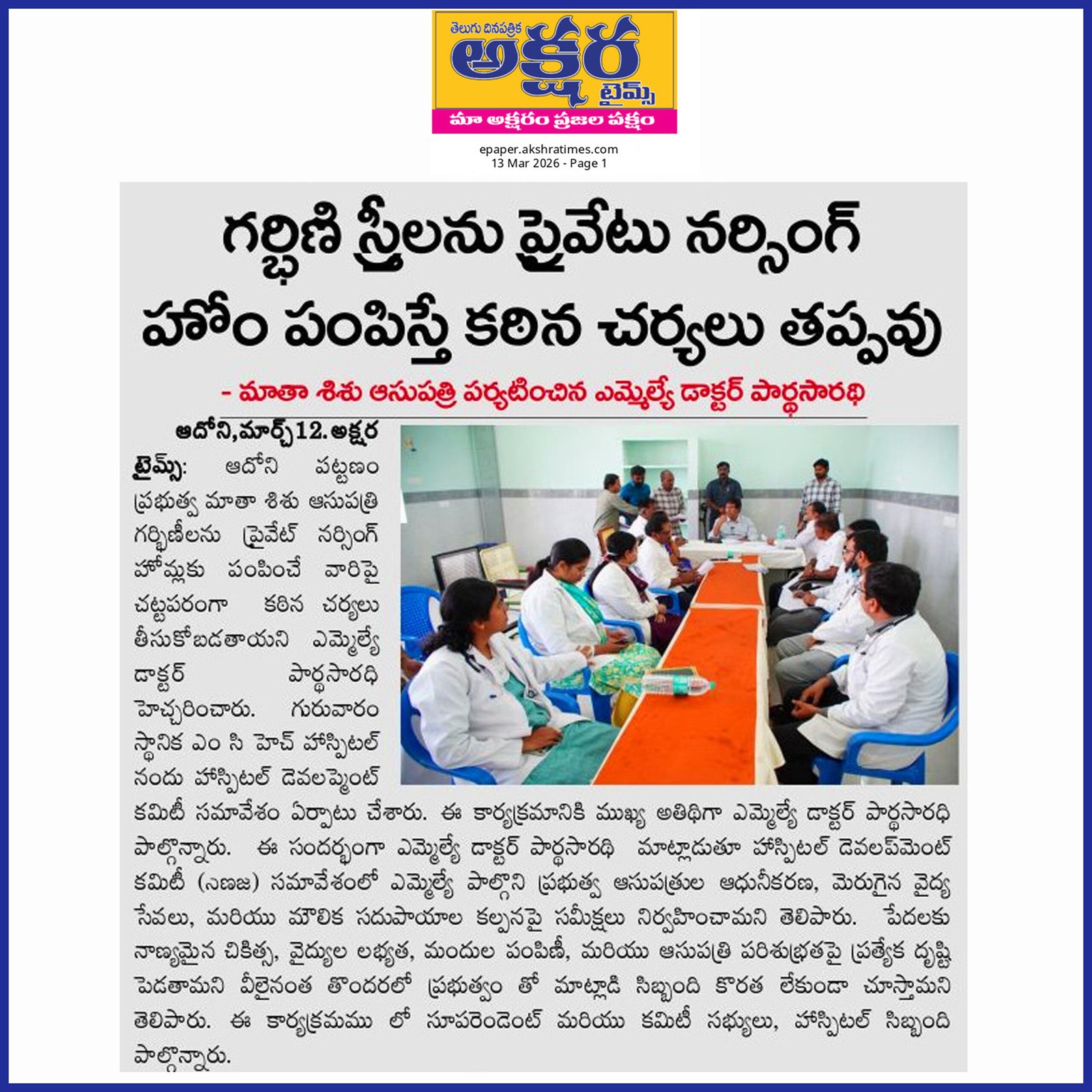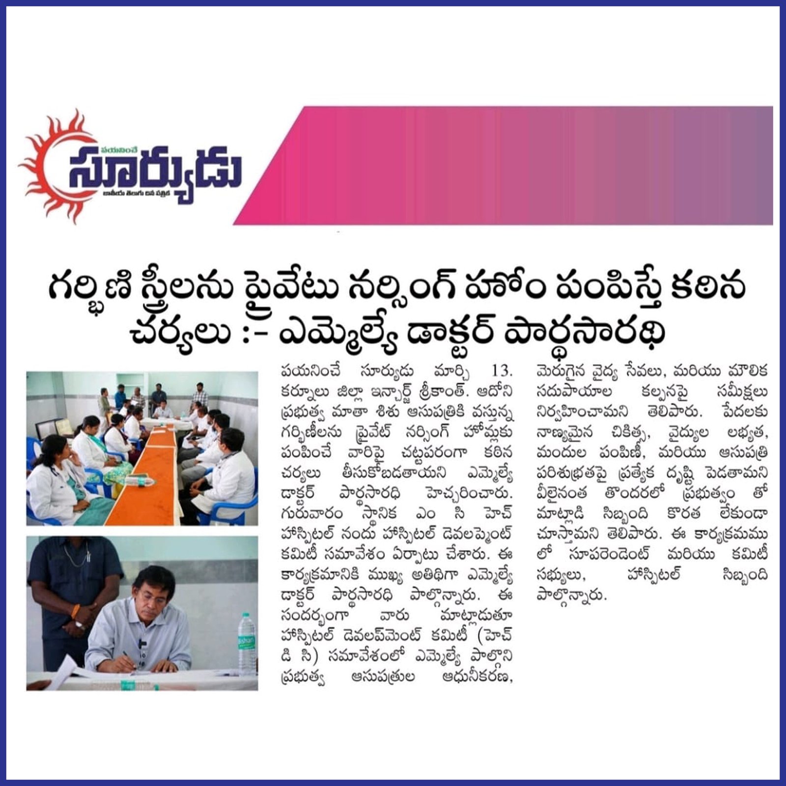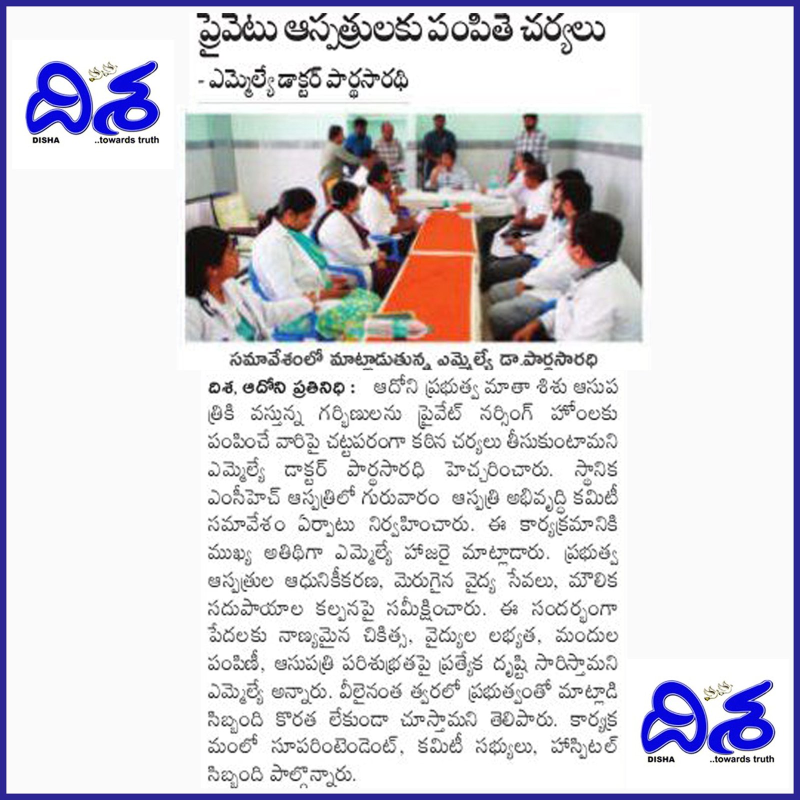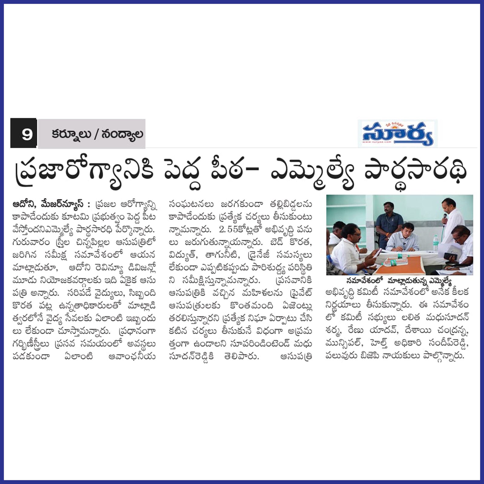 డా. పి.వి. పార్థసారథి, ఆయన సేవా గుణంతో ఎల్లప్పుడూ ప్రజల పక్షాన నిలబడే ఓ భారత రాజకీయ నాయకుడు. ప్రస్తుతం ఆయన ఆదోని నియోజకవర్గం ఎమ్మెల్యే గా ఆంధ్రప్రదేశ్ రాష్ట్ర ప్రజలకి తన సేవలని అందిస్తున్నారు.