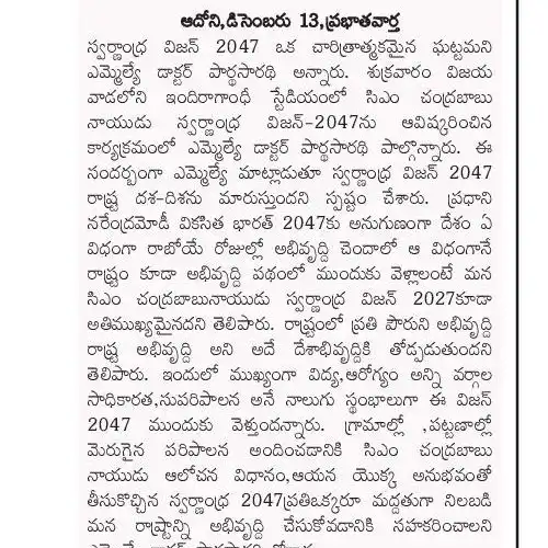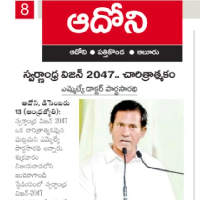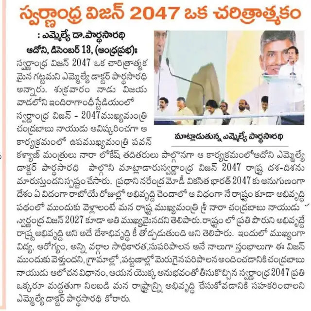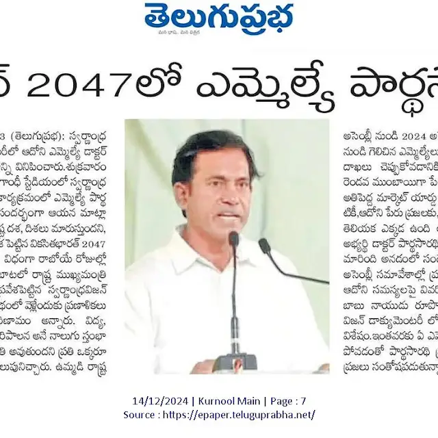 దిశగా అడుగులు వేస్తున్న నాయకుడు ఎం.ల్ .ఏ డా .పి .వి .పార్థసారథి